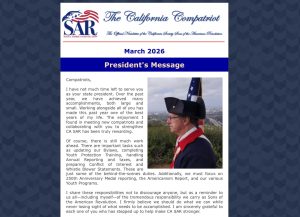 The California Society of the Sons of the American Revolution was instituted October 22nd, 1875. It was the first body in inception, institution and organization, to unite the descendants of Revolutionary patriots and perpetuate the memory of all those who took part in the American Revolution and maintained the Independence of the United States of America. It was fully and completely organized on the 4th of July, 1876, under the name of “Sons of Revolutionary Sires.” On the 30th of April, 1889, a number of similar co-equal Societies of different States formed a general Society under the name of “The National Society of the Sons of the American Revolution,” in which movement this Society heartily co-operated and changed its name to The California Society of the Sons of the American Revolution, under which latter name it has been since known. We have used the acronym SAR to identify ourselves for over 100 years.